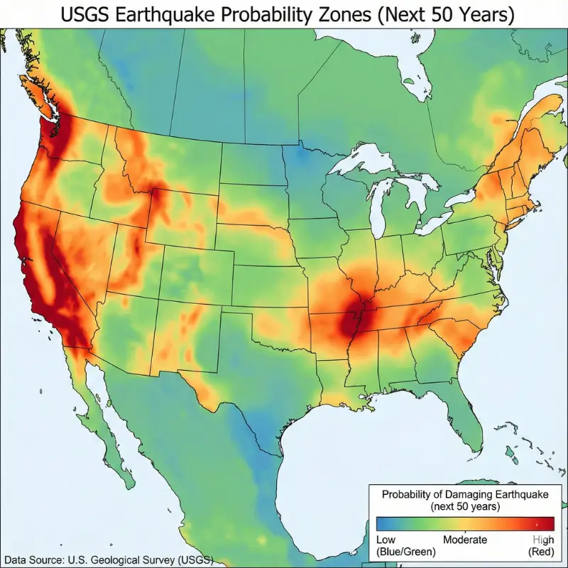 The United States Geological Survey (USGS) identifies several high-risk earthquake zones beyond California: